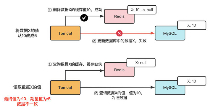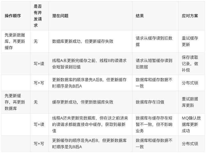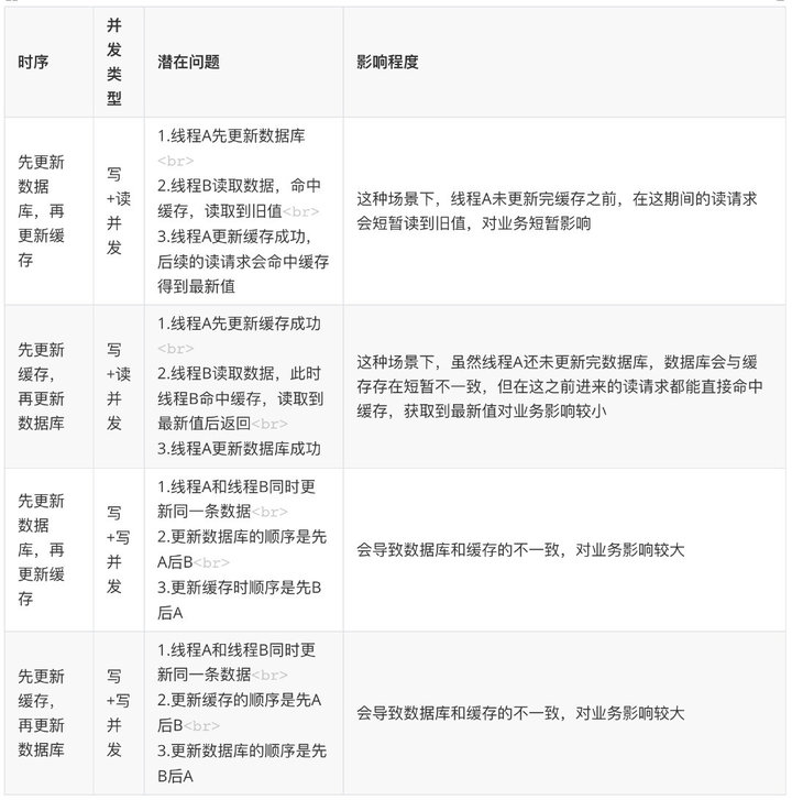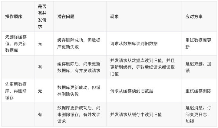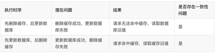 - 更新(修改/删除)数据时,会有个时序问题:更新数据库与删除缓存的顺序(这个过程会发生数据不一致性问题)