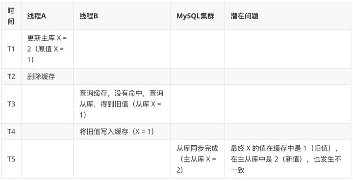 如果线程 A 更新了数据库中的值,但还没来得及删除缓存值,线程 B 就开始读取数据了,那么此时,线程 B 查询缓存时,发现缓存命中,就会直接从缓存中读取旧值。其本质也是,本应后发生的“B 线程-读请求” 先于 “A 线程-删除缓存” 执行并返回了。