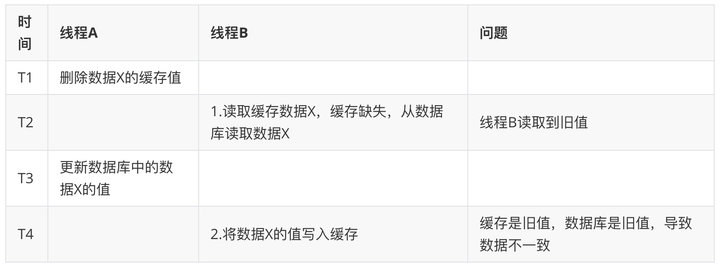 假设线程 A 删除缓存值后,由于网络延迟等原因导致未及更新数据库,而此时,线程 B 开始读取数据时会发现缓存缺失,进而去查询数据库。而当线程 B 从数据库读取完数据、更新了缓存后,线程 A 才开始更新数据库,此时,会导致缓存中的数据是旧值,而数据库中的是最新值,产生“数据不一致”。其本质就是,本应后发生的“B 线程-读请求” 先于 “A 线程-写请求” 执行并返回了。